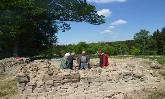 | Dazu entwickelte der damalige Limesbeauftragte des Landes Rheinland-Pfalz, Dr. Jens Dolata, ein Grundkonzept, das er aber nicht mehr konkretisieren konnte, weil er zu einer anderen Tätigkeit abberufen wurde. Ein Nachfolger wurde nicht ernannt. Als die Sache zu versanden drohte, nahm sich schließlich die LimesArbeitsgruppe im Förderverein ‚Freunde des Limes‘ der Sache an: Hansjörg Hausen entwickelte ein konkretes Konzept mit Texten und Illustrationen, die anderen Mitglieder der Arbeitsgruppe sorgten für die nötigen Erdarbeiten, bereiteten die Palisaden vor, errichteten diese und bauten die Gerüste für Informationstafeln, der Förderverein und Spender stellten die erforderlichen Finanzmittel bereit. |