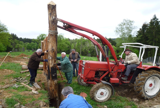 Errichtung der Palisaden am Limes-Lehrpfad. |