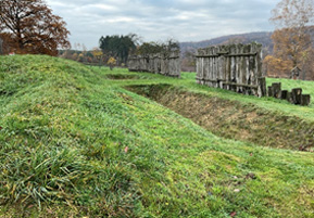 Limesdurchgang zwischen Wall, Graben und Palisaden. |